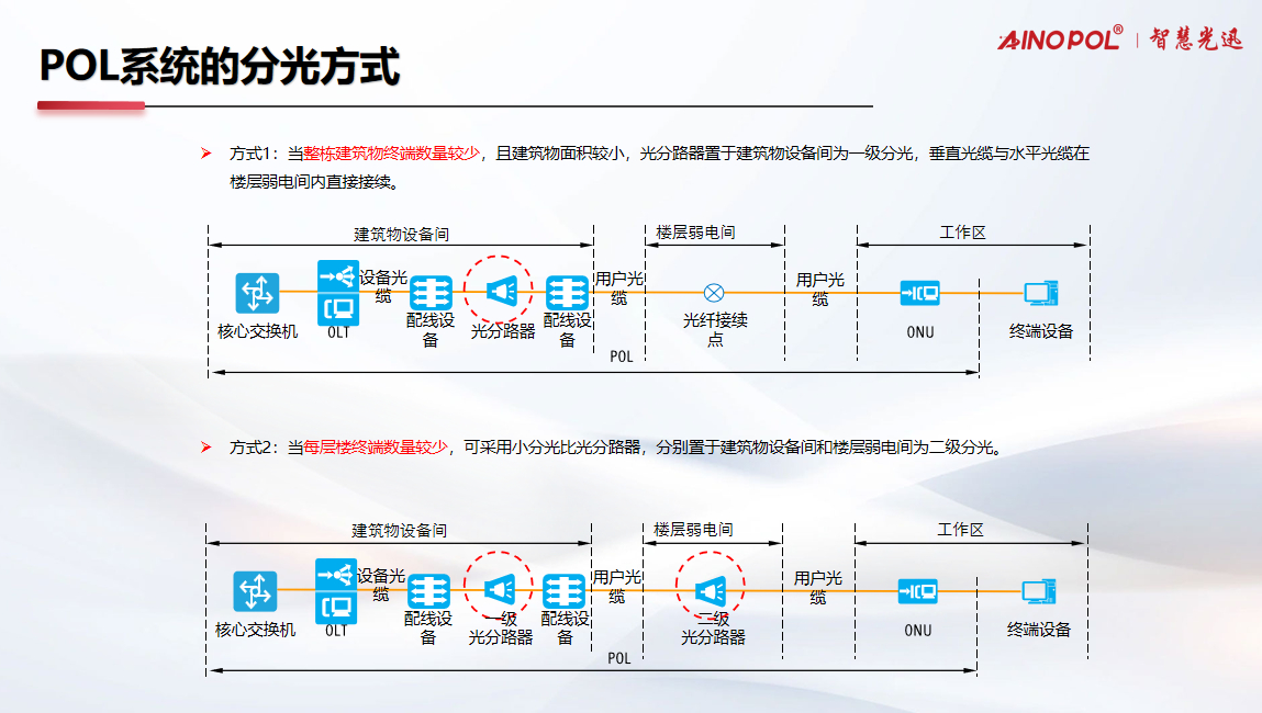适用场景:整栋建筑物内终端(ONU)数量相对较少,或建筑物面积、楼层规模适中。