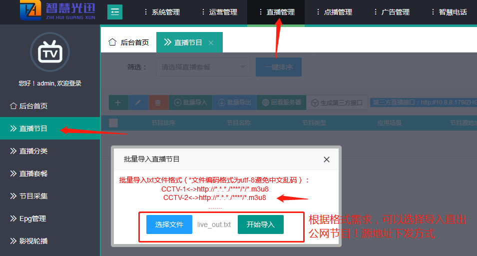 (导入完后别忘记批量编辑节目所属场景套餐上线哦)