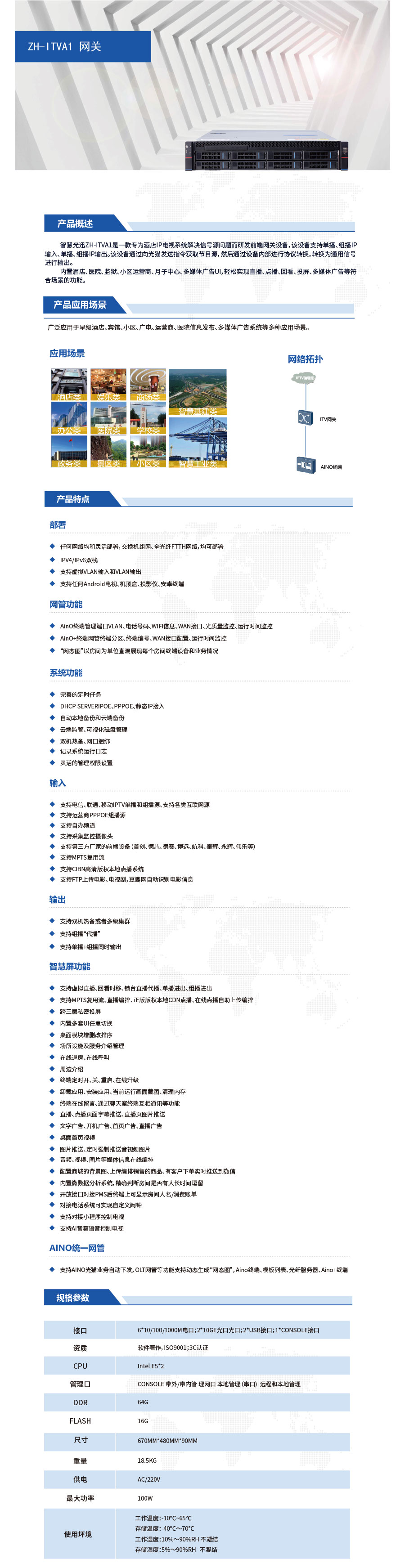 智慧光迅ITV网关是专为酒店IP电视系统解决信号源问题而研发前端网关设备,该设备支持单播、组播IP输入、单播、组播IP输出。该设备通过向光猫发送指令获取节目源,然后通过设备内部进行协议转换,转换为通用信号进行输出。内置酒店、医院、监狱、小区运营商、月子中心、多媒体广告UI,轻松实现直播、点播、回看、投屏、多媒体广告等符合场景的功能。该设备广泛应用于酒店、医院、会所、监狱等场所的数字电视系统。