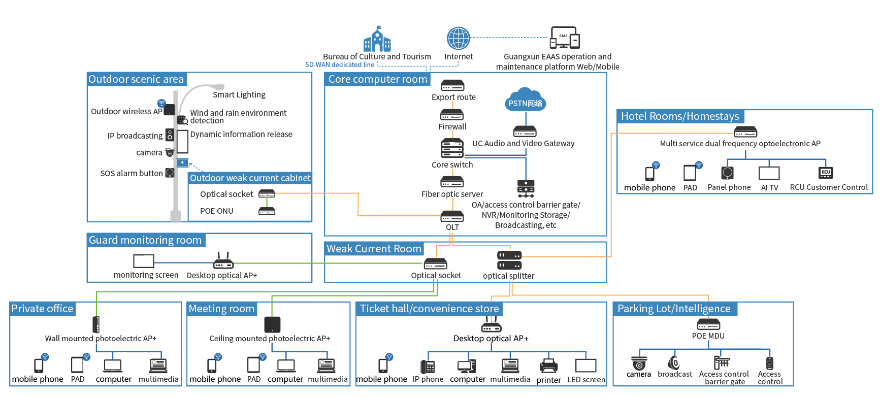During holidays, weekends, or large-scale events, the number of tourists surges, and a large number of devices are simultaneously connected to the network, requiring the network to have high concurrency access capabilities and sufficient bandwidth carrying capacity